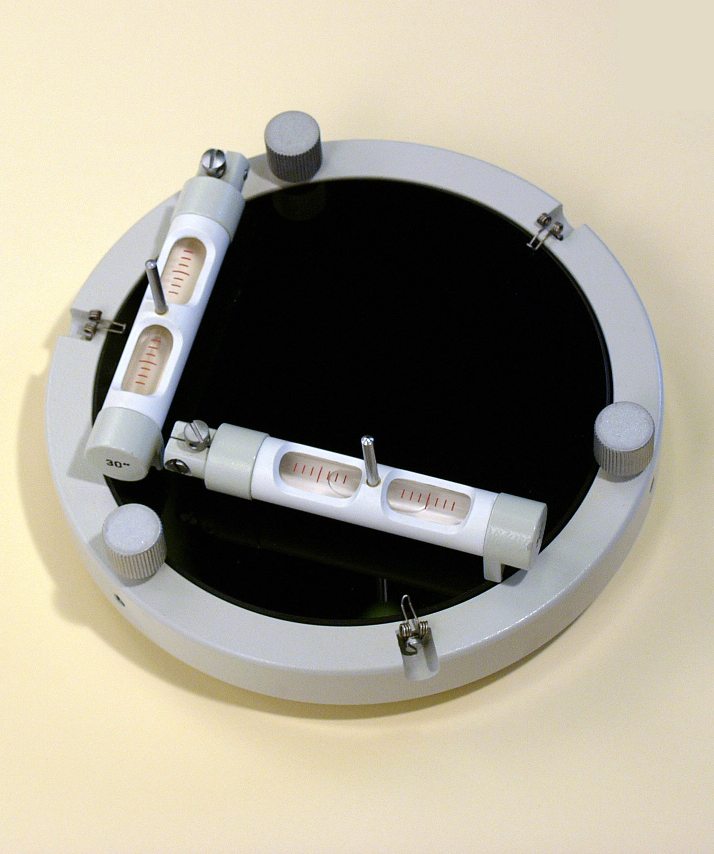 Special artifical horizon mirrors, like this example from Freiberger, have levelling feet and come with two levels to get the mirror to within 6" of horizontal. They are expensive. They need a firm, reasonably flat surface to sit on and take a while to set up satifactorily. Alternatively, a pan of mercury or even cold tea can be used as a mirror. Liquids have the advantage of being self levelling, so they are much easier to set up, but it is preferable to have some viscocity so that slight breezes do not disturb the surface. Molasses or used engine oil have been used with success. Davis offer a nice (and cheap) portable liquid mirror type artificial horizon, which has a cloche covering the liquid to keep the breeze off. Liquid mirror type artifical horizons are not fussy what sort of surface they set upon - a sand dune is as good as anything else. The disadvantage of all mirror type artificial horizons is that they can restrict the field of view quite severely, so that it is difficult to find the celestial body as reflected in the mirror - particularly at night when it can be difficult to see the mirror at all, let alone what star is reflected in it! Liquid type artificial horizons can be messy when it comes to comes to getting liquid out of the pan and back into the storage bottle - unless it is cold tea, then you just warm it up and drink it!