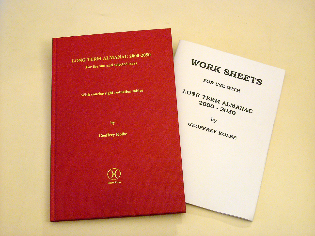 The only problem with the Nautical Almanac is that it is only good for one year. It is easy to forget to renew it, or even have it go out of date on an extended trip which goes over into the next year. For this reason, I wrote my own almanac, the "Long Term Almanac 2000 - 2050" for the sun and selected stars, which is good for 50 years from the year 2000 to the year 2050. It is a hardback book, somewhat smaller than the Nautical Almanac and also has a set of concise sight reduction tables in the back. It is (to my mind) easier to use than the Nautical Almanac and is somewhat smaller in size - though it does not give as much information on as many celestial bodies as the Nautical Almanac.